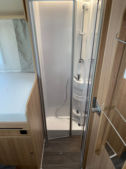Utstyrt med blant annet gulvvarme, markise, fortelt, sykkelstativ, senkeseng, seperat dusj og wc.